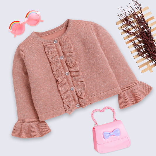 Yellow Apple-Stylish Girl Ruffle Front Sweater | Premium Winter Knitwear