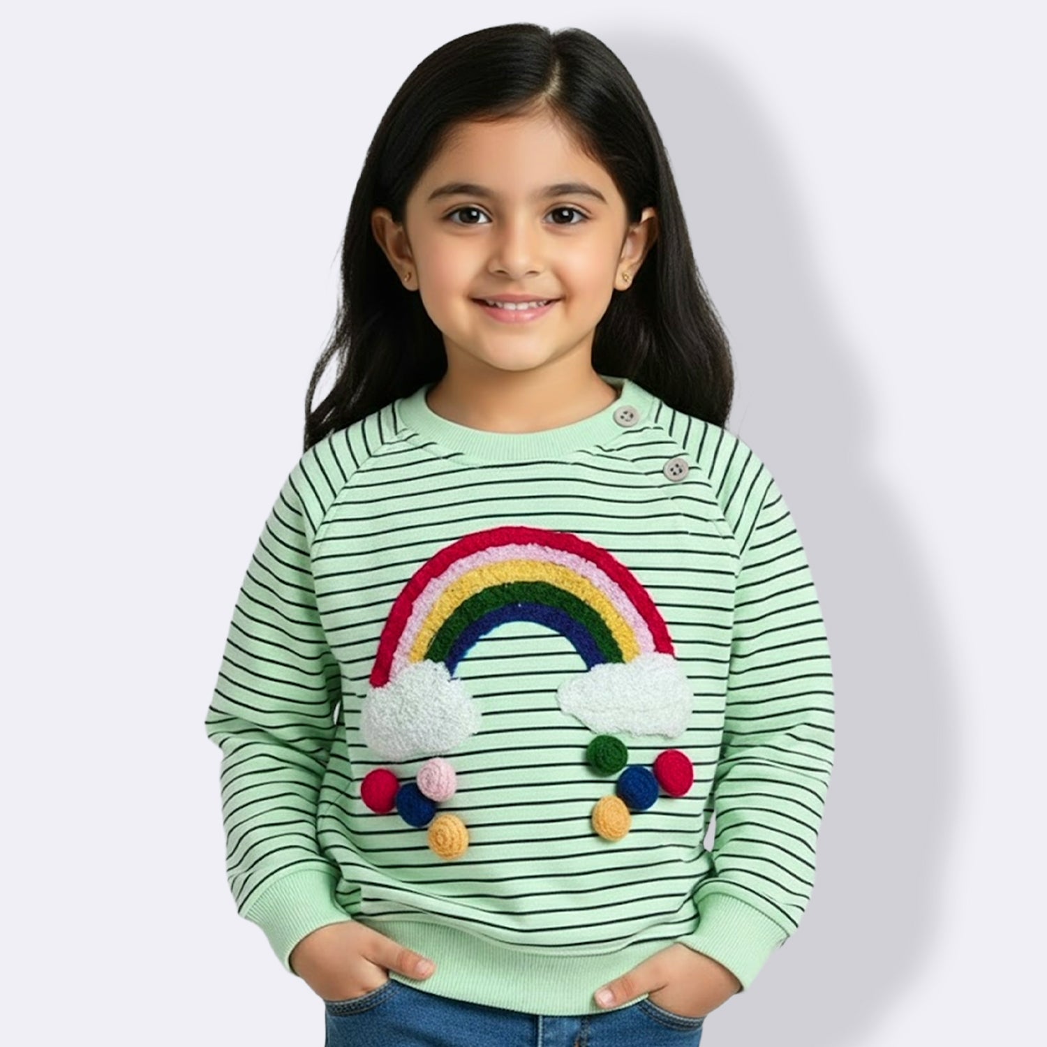 Yellow Apple- Adorable Kids Sweatshirt with Rainbow & Cloud Embroidery
