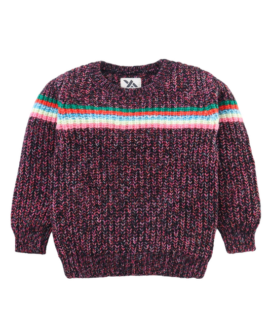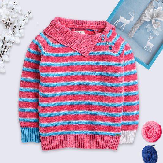 Girls Striped Round Neck Sweater