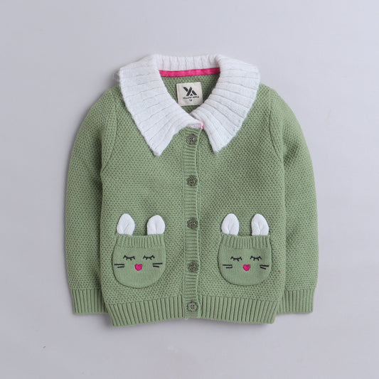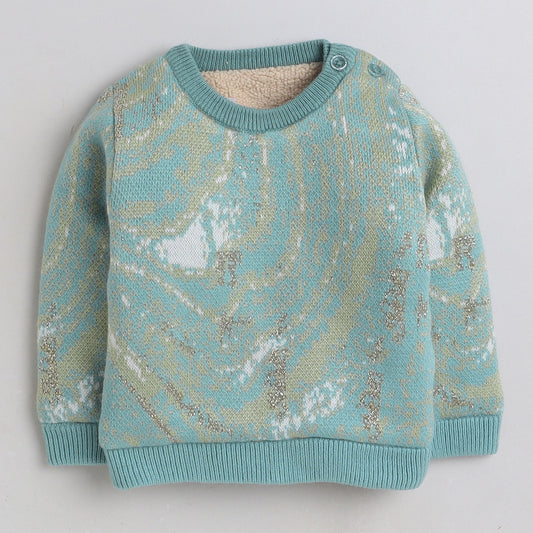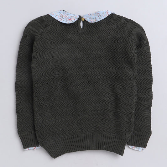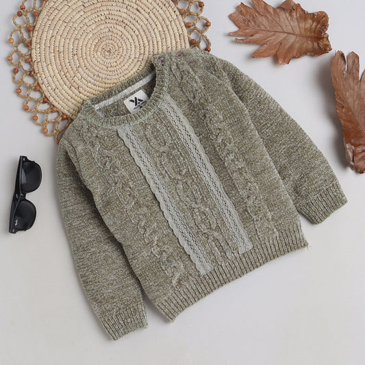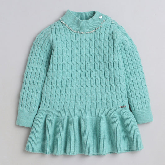 Girls Self Design Round Neck Full Sleeves Sweater Green Color