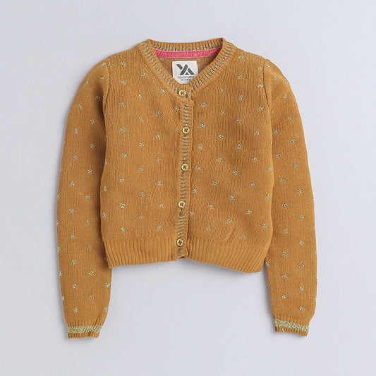 Yellow Apple-Kids Premium Long Buttoned Winter Cardigan | Soft Knitted Warm Coat for Girls