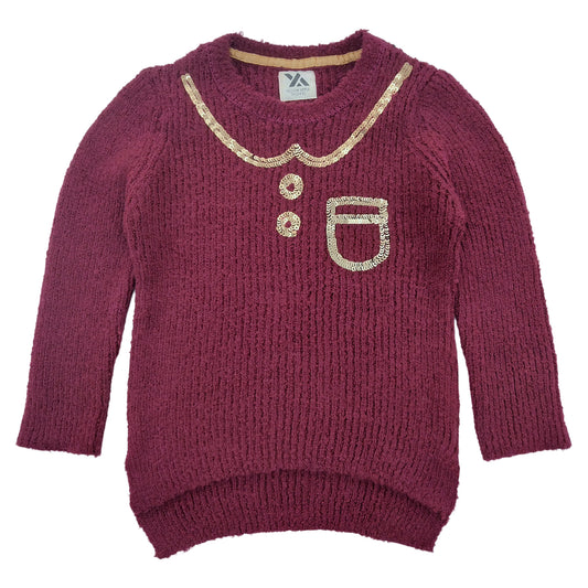 Yellow Apple- Girls Self Design Round Neck Full Sleeves Sweater Maroon Color