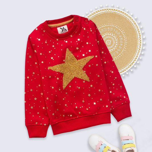 Kids Dot & Star Print Warm Sweater For Girls