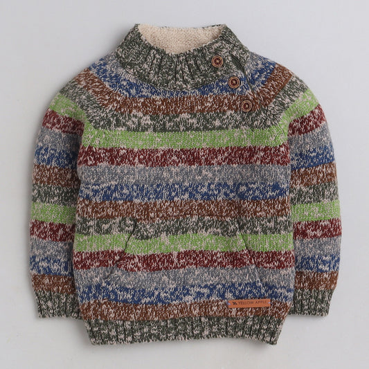 Yellow Apple- Trendy Striped Knit Sweater for Boys | Cozy Round-Neck Pullover | Winter Casual Wear
