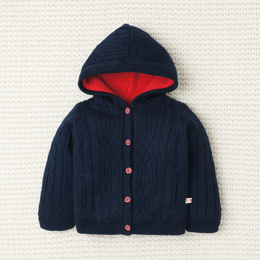 Yellow Apple- Girl Hooded Winter Sweater | Soft Knitted Cardigan with Warm Fleece Lining