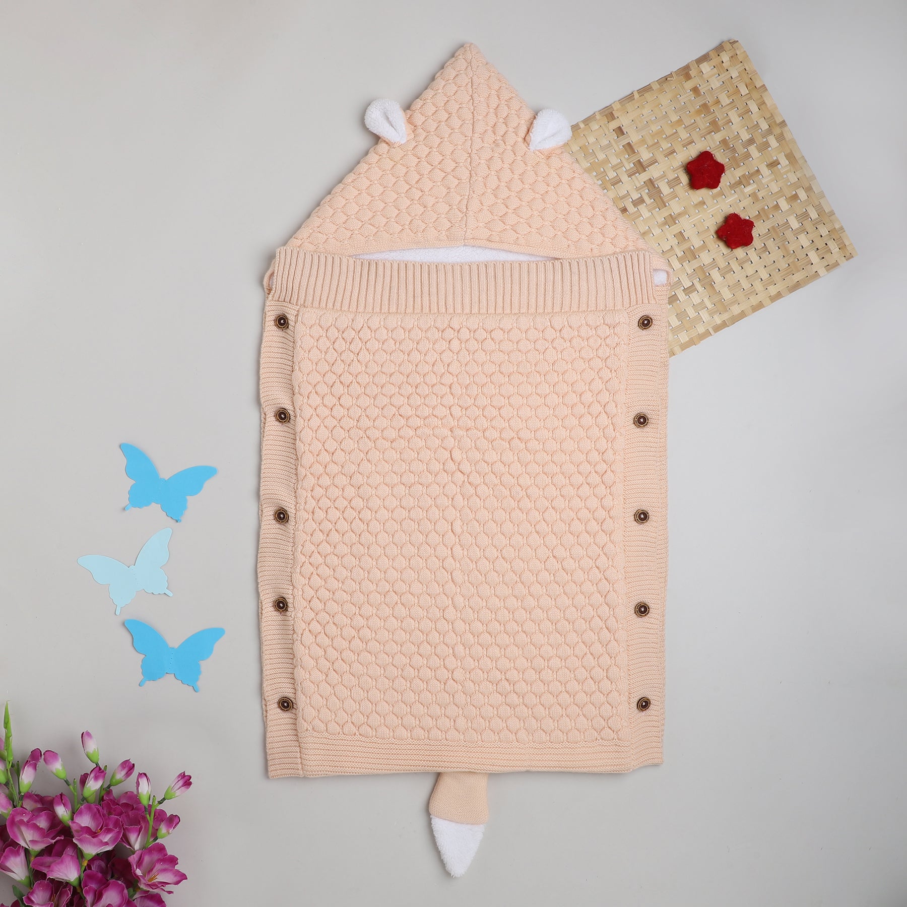 Yellow Apple Knitted Baby Sleeping Bag with Hood | Soft Winter Baby Sleep Sack