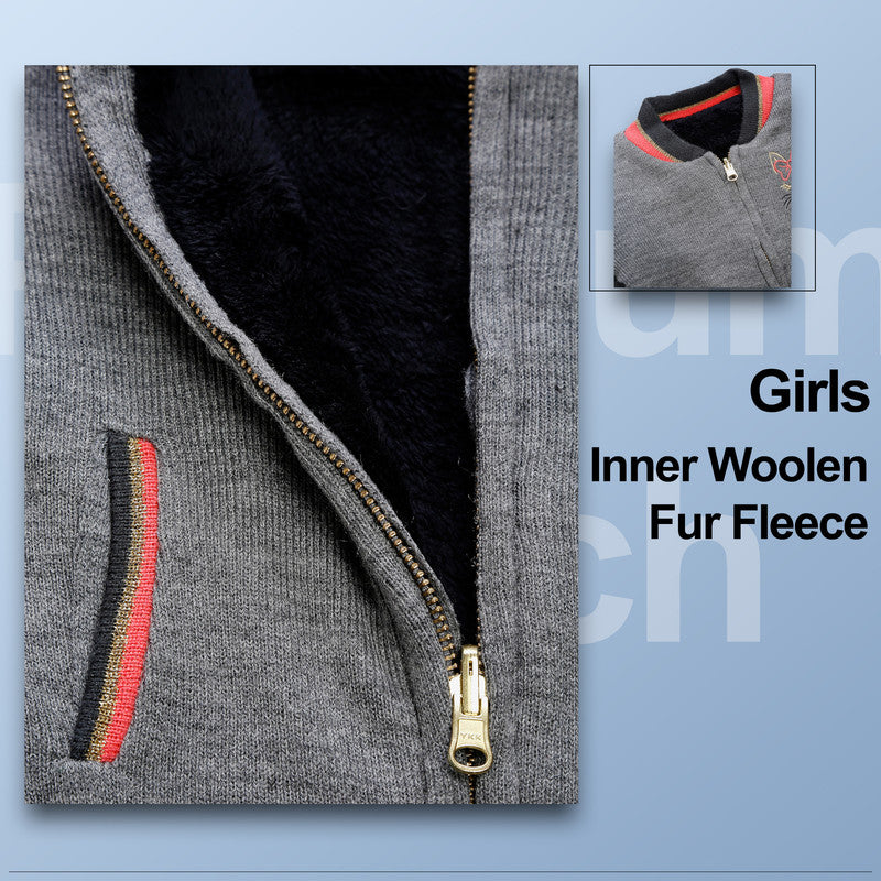 Kids Woolen Warm Hoody with Inner Fleece for Girls