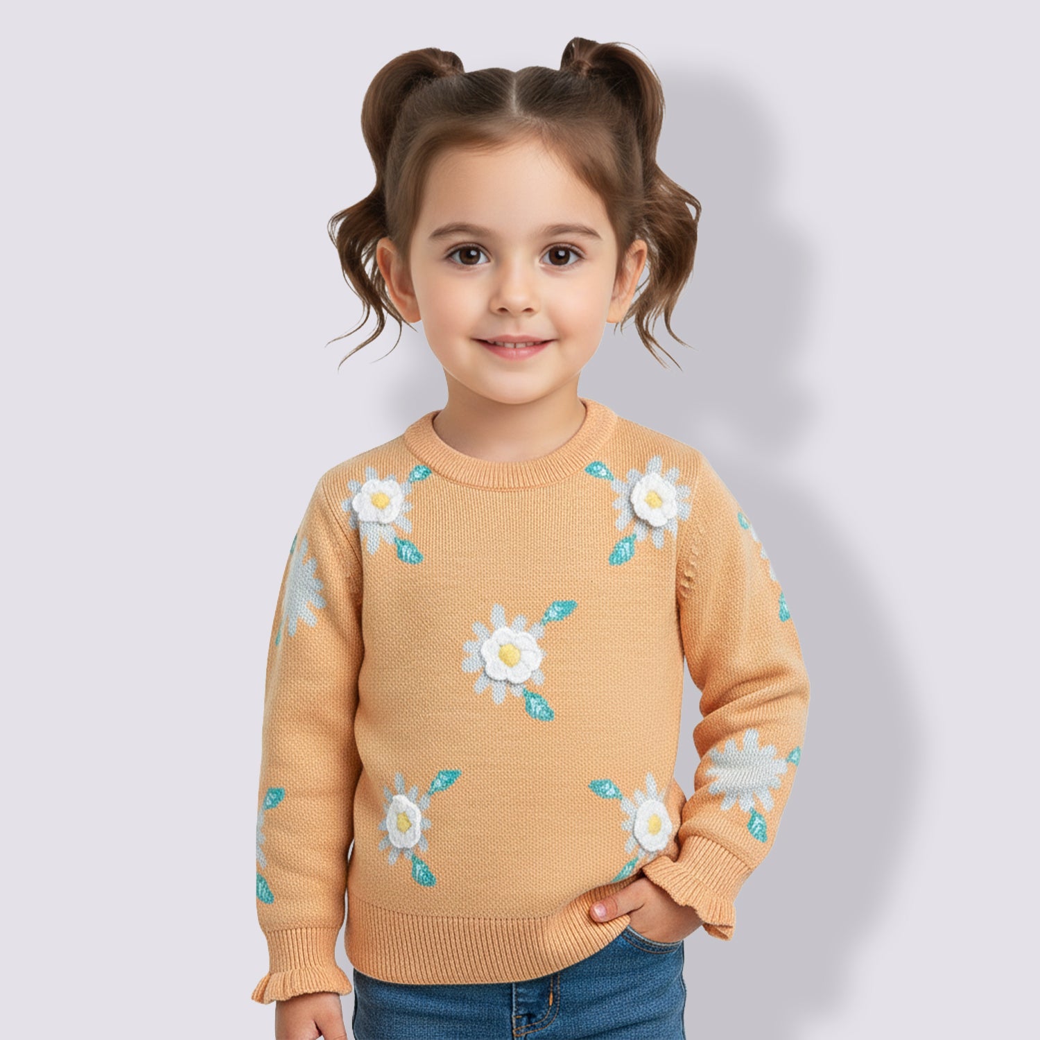 Yellow Apple Kids Woolen Warm Sweater Full Sleeve with Round Neck for Girls