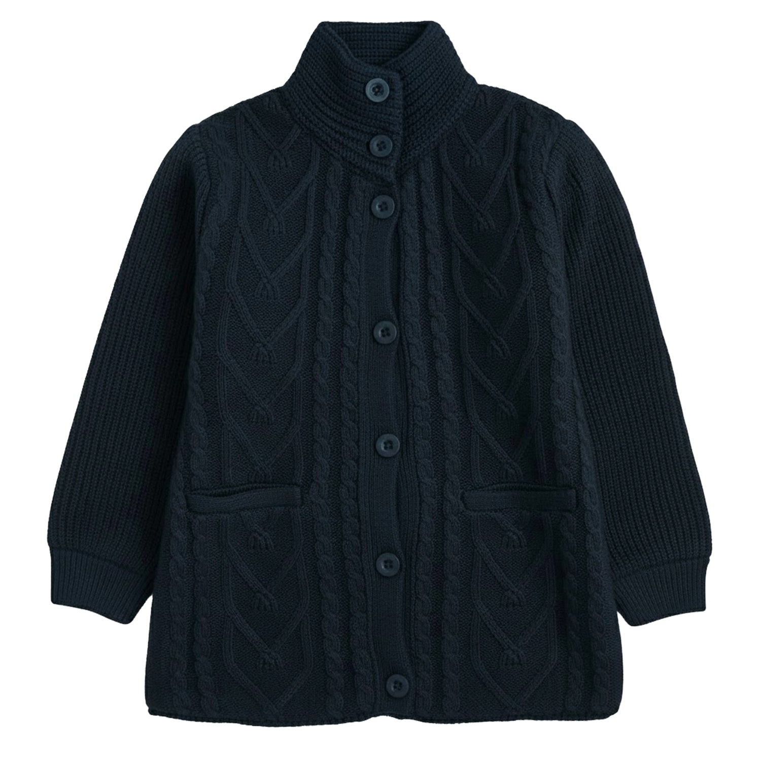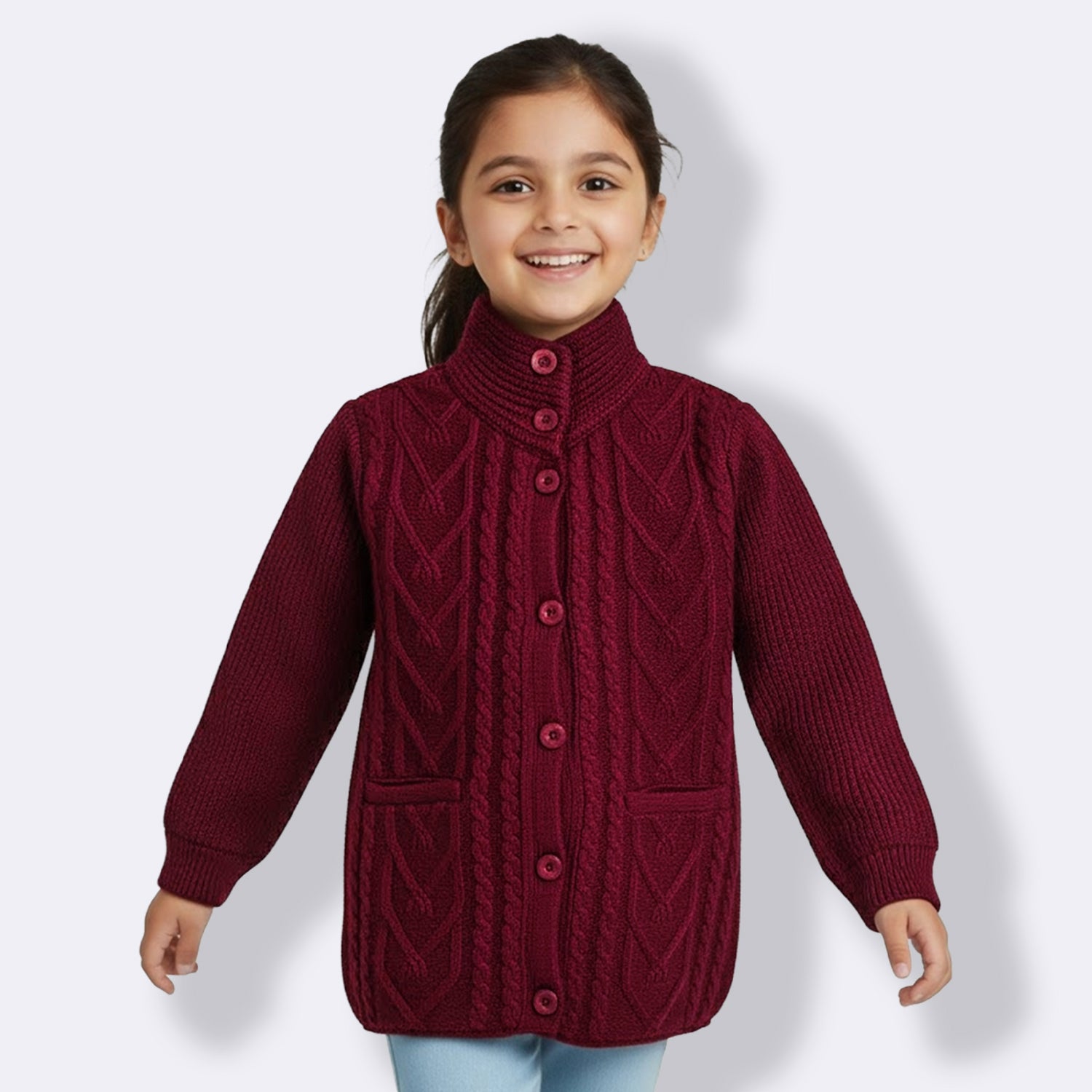 Yellow Apple-Kids Premium Long Buttoned Winter Cardigan | Soft Knitted Warm Coat for Girls