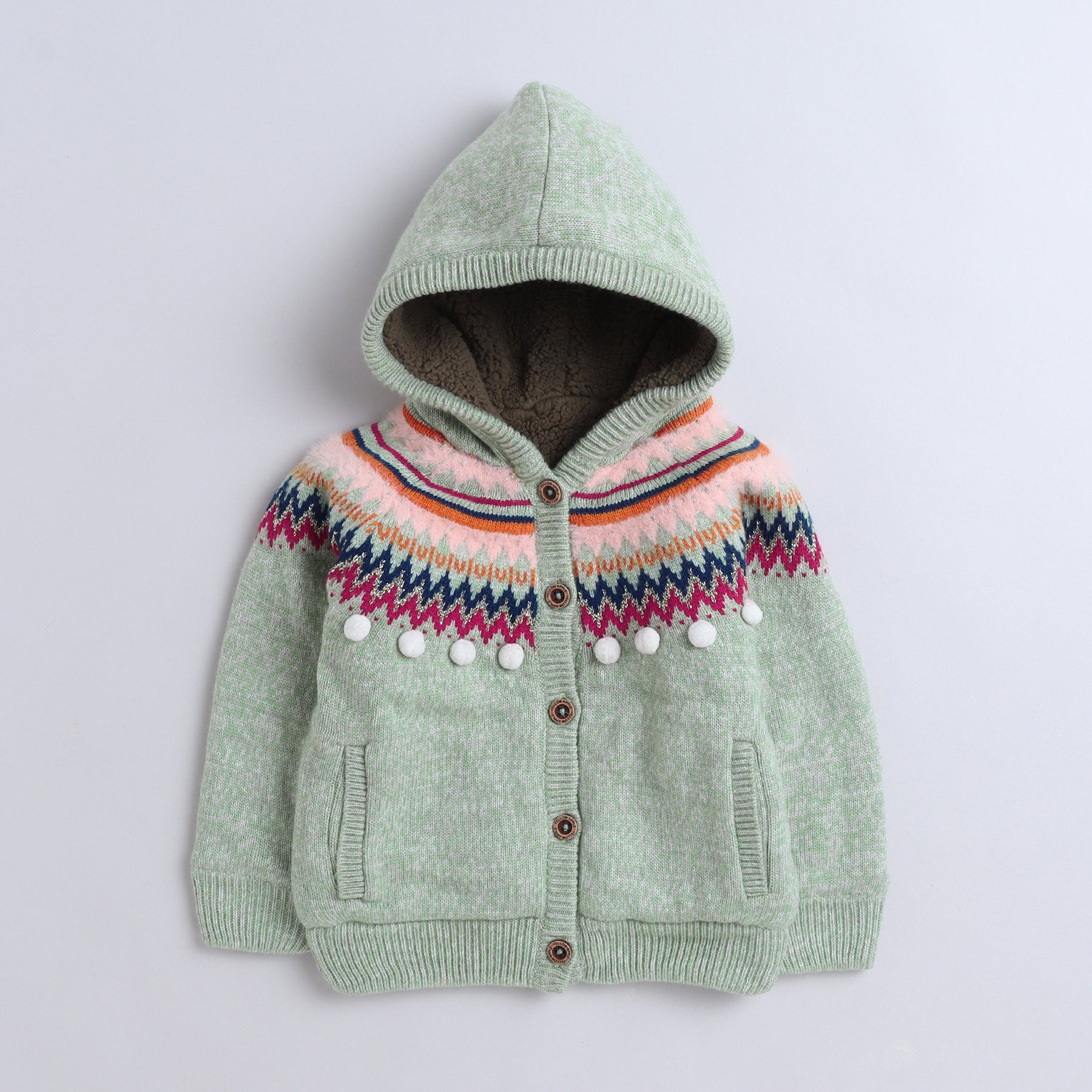 Kids Woolen Warm Hoody with Inner Fleece for Girls