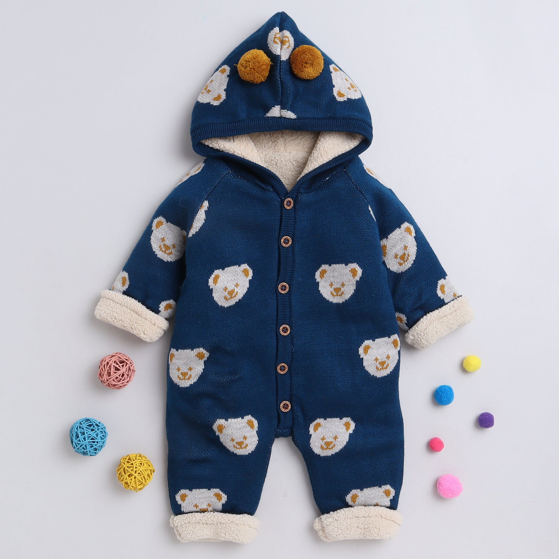 Yellow Apple- Cute Teddy Bear Hooded Baby Romper | Cozy Winter Knitwear for Infants