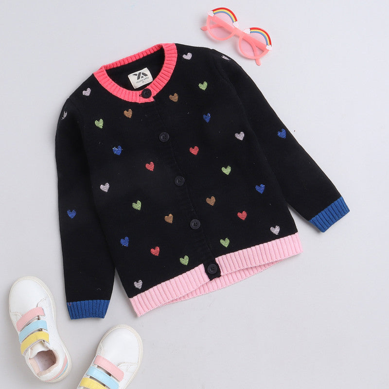 Yellow Apple- Cute Knit Cardigan for Girls | Adorable Heart Pattern Sweater with Button Closure